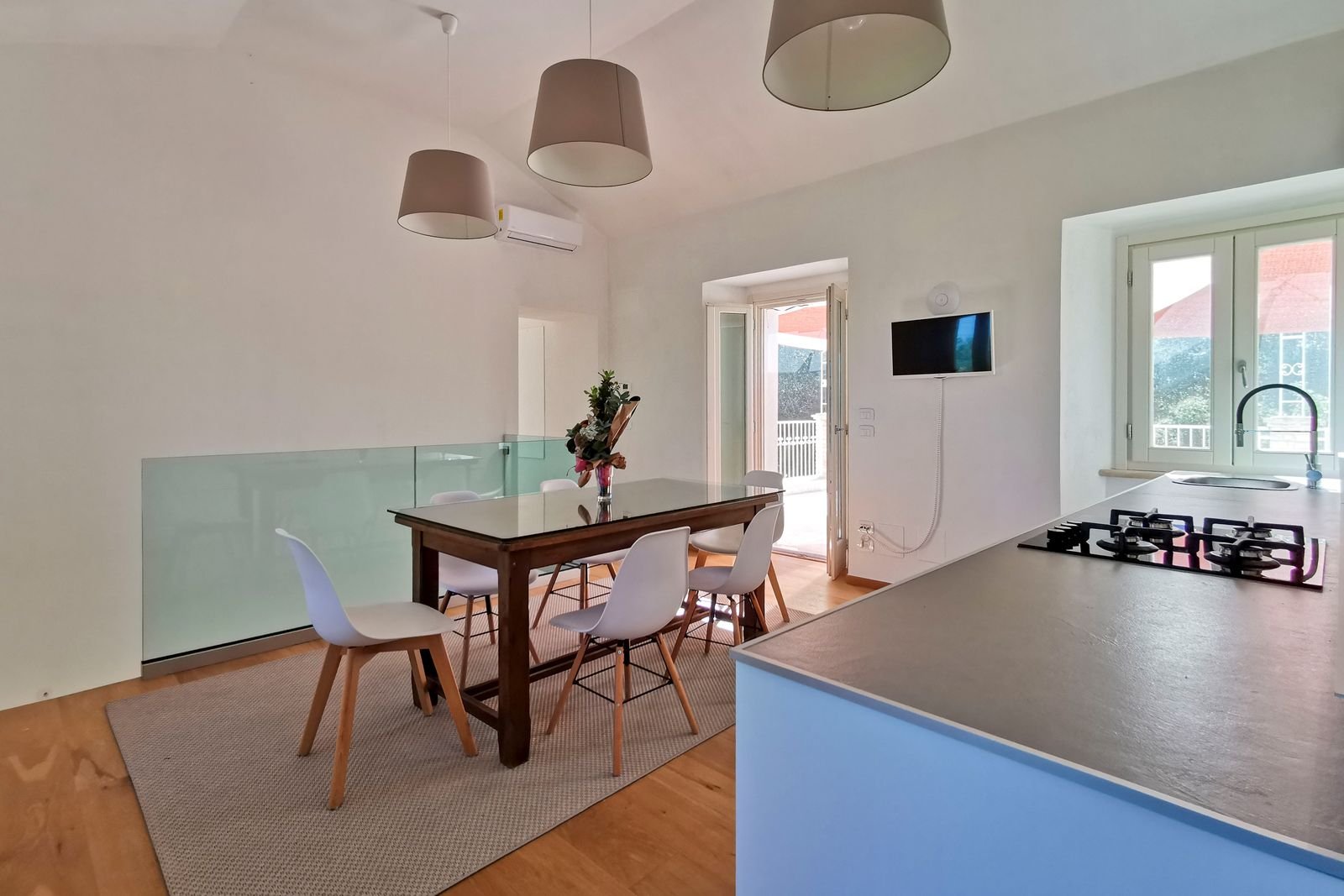 De luxe villa straalt veel elegantie uit door de geslaagde mix van authentiek en modern. Het voormalige jachthuis bestaat eigenlijk uit 4 appartementen, die geschikt zijn voor 2 tot 6 personen. Elk appartement is uitgerust met een eigen keuken en terras. Er zijn 3 appartementen met elk 2 slaapkamers. Deze 3 appartementen zijn intern met elkaar verbonden. Verder is er een nog een apart appartement, met eveneens 2 slaapkamers. In totaal zijn er 6 badkamers in de villa.