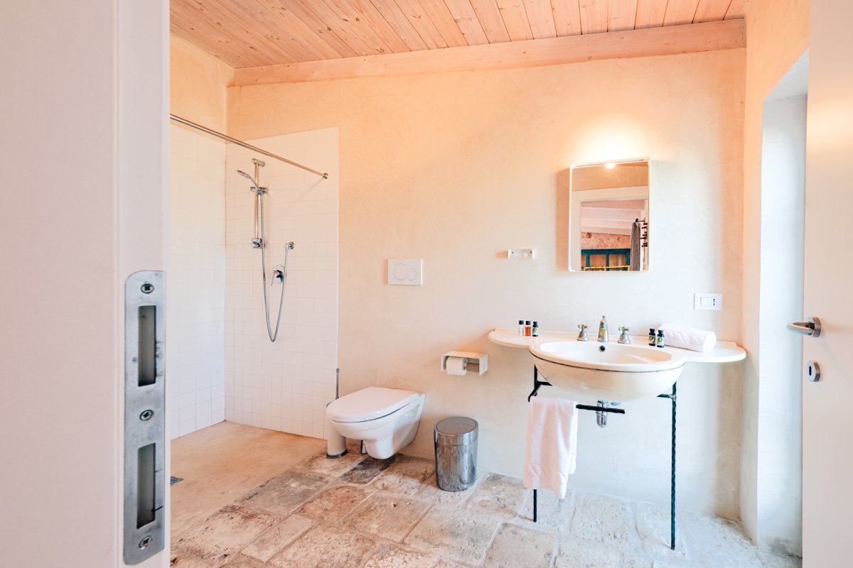 De villa bestaat uit vier wooneenheden, met in totaal 6 slaapkamers en 5 badkamers. Het ruime hoofdhuis is gebouwd in de eerste helft van de 20e eeuw. Het heeft een zeer ruime open-space woon-/eetkamer met keuken, eettafel, zithoek en open haard. Verder zijn er 2 slaapkamers en een badkamer in het hoofdhuis. Naast het hoofdhuis staat een historische 'trullo' met een karakteristiek puntdak. Deze trullo heeft een eigen ingang en beschikt over een slaapkamer en een badkamer met douche en toilet. De derde wooneenheid is gelegen in 3 oude stallen. Ze zijn fraai verbouwd tot 3 sfeervolle slaapkamers met 2-persoonsbed, elk voorzien van e-suite badkamer met douche en toilet.