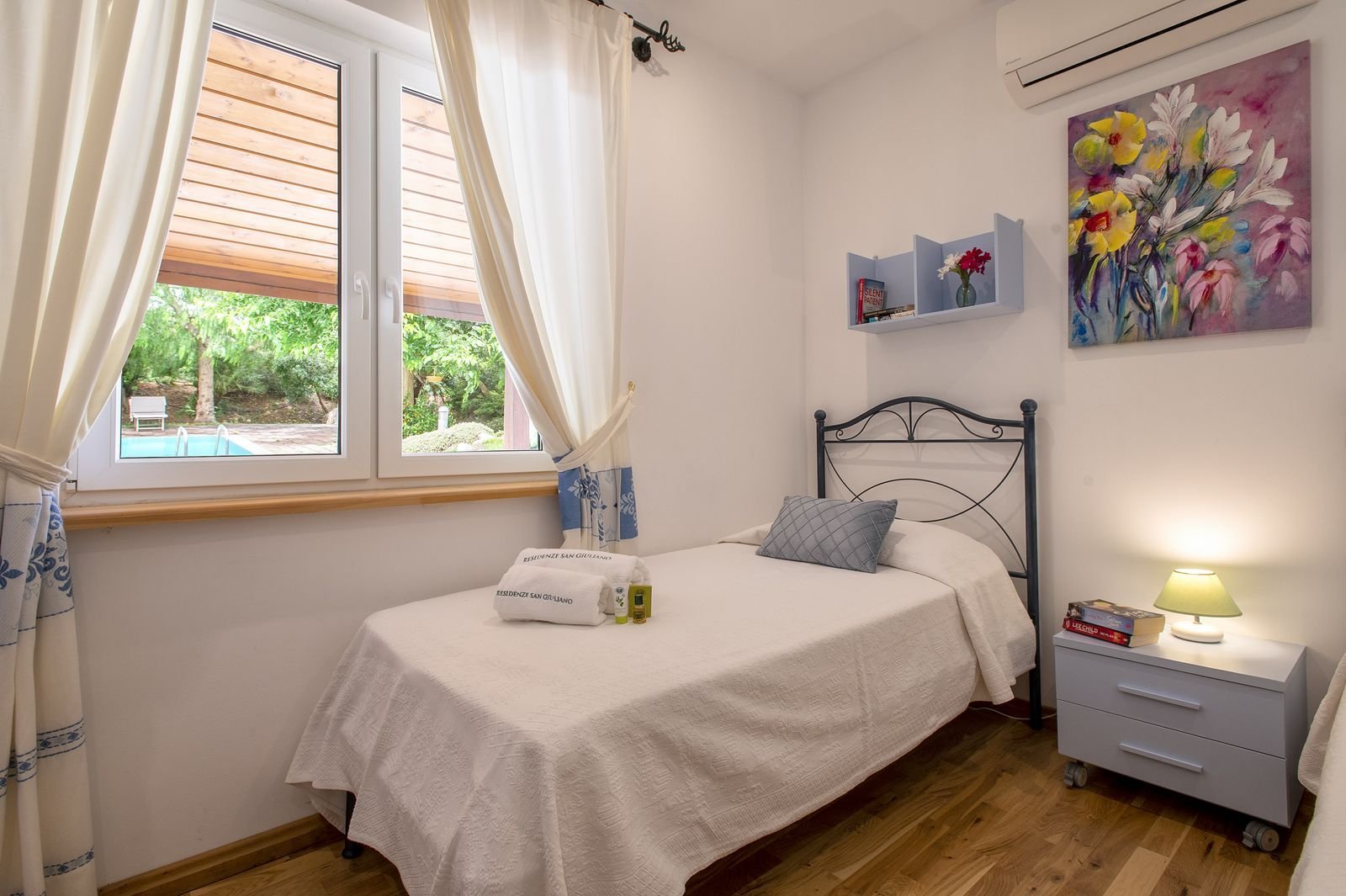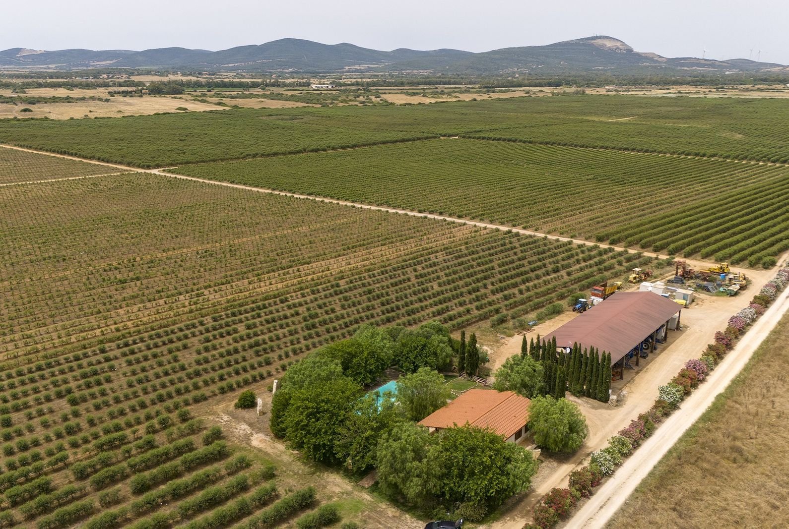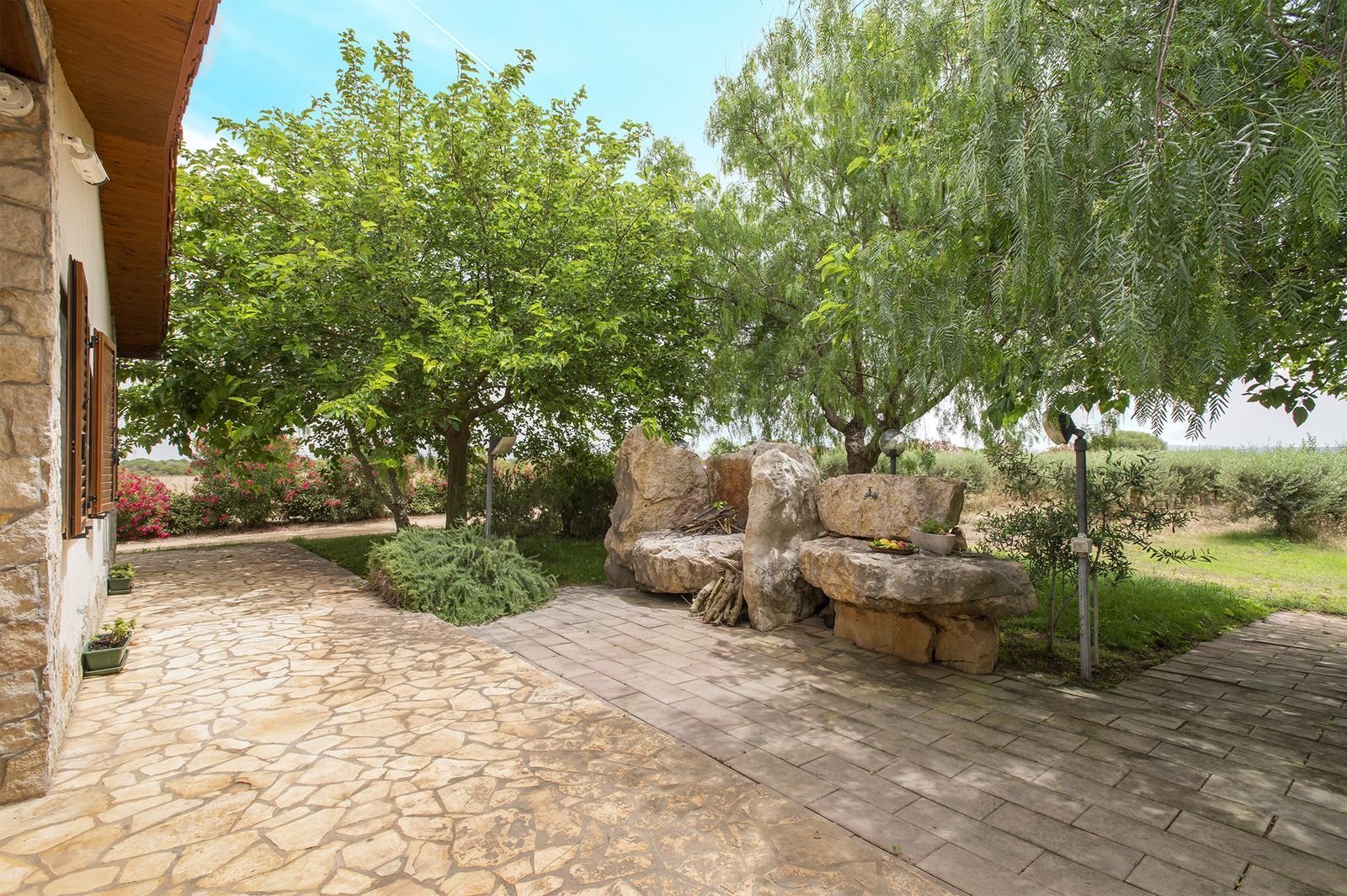 De entree van de doorgaande weg is bijzonder te noemen. Het is een onverharde afslag van circa 150 meter waarop je bij een elektronisch hek komt, waarna je nog zo’n 250 meter onverhard verder rijdt tot de villa. Verder komt voorbij het hek alleen nog bestemmingsverkeer langs voor de opslag van de boer, lees vroeg in de ochtend als je nog niet wakker bent en tegen einde dag. De opslag van de boer ligt naast het huis maar daar heb je absoluut geen last van. Het is een uitzonderlijke plek waar je helemaal tot rust kan komen. Het ligt midden in olijfplantages.