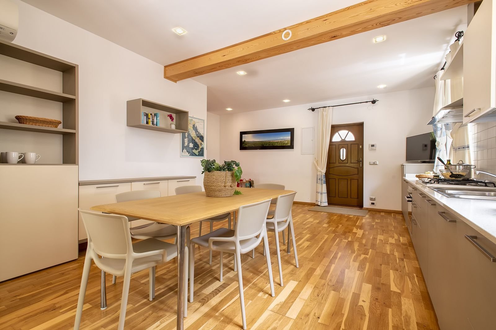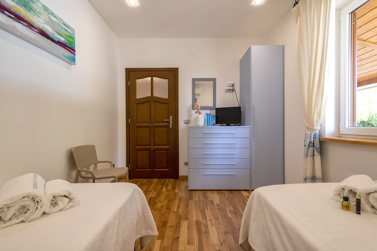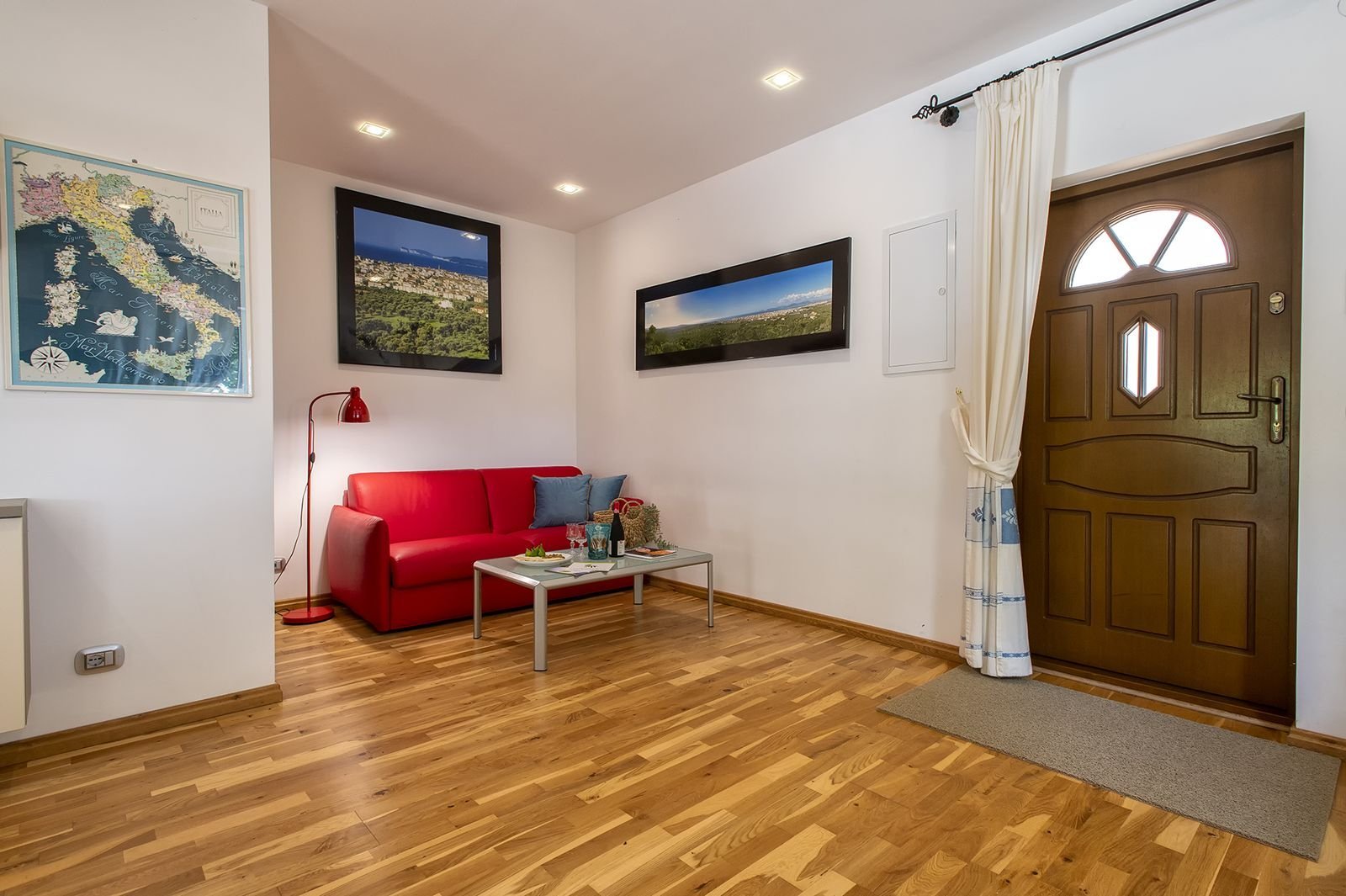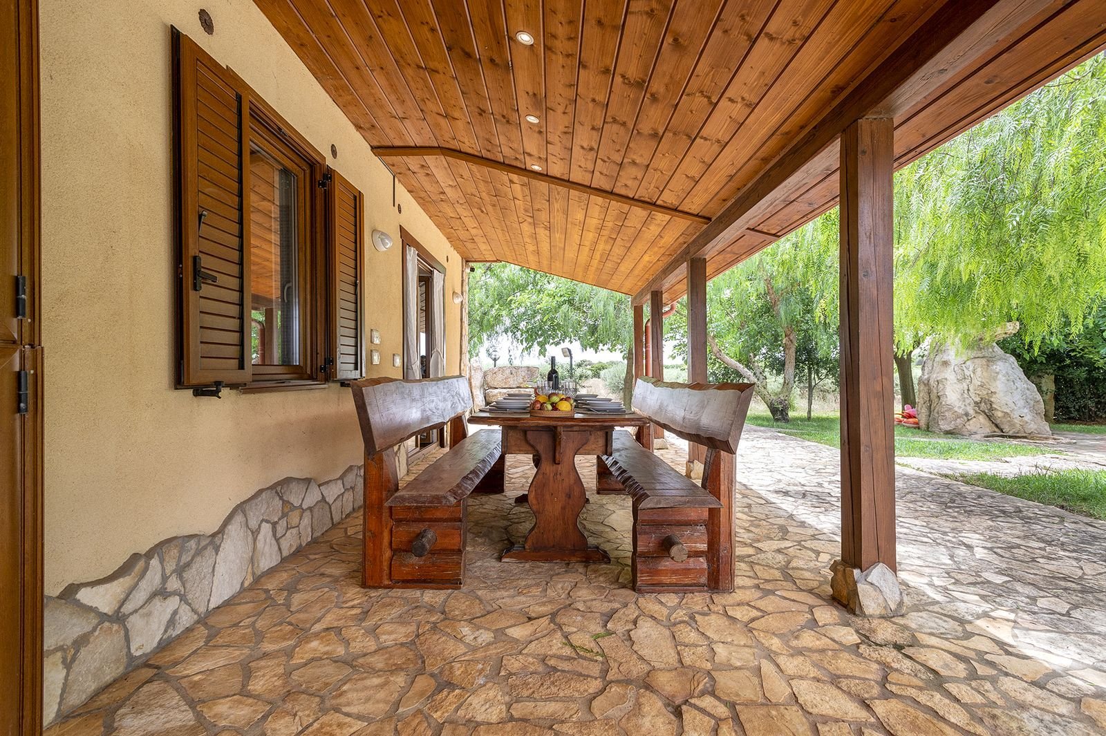 De entree van de doorgaande weg is bijzonder te noemen. Het is een onverharde afslag van circa 150 meter waarop je bij een elektronisch hek komt, waarna je nog zo’n 250 meter onverhard verder rijdt tot de villa. Verder komt voorbij het hek alleen nog bestemmingsverkeer langs voor de opslag van de boer, lees vroeg in de ochtend als je nog niet wakker bent en tegen einde dag. De opslag van de boer ligt naast het huis maar daar heb je absoluut geen last van. Het is een uitzonderlijke plek waar je helemaal tot rust kan komen. Het ligt midden in olijfplantages.