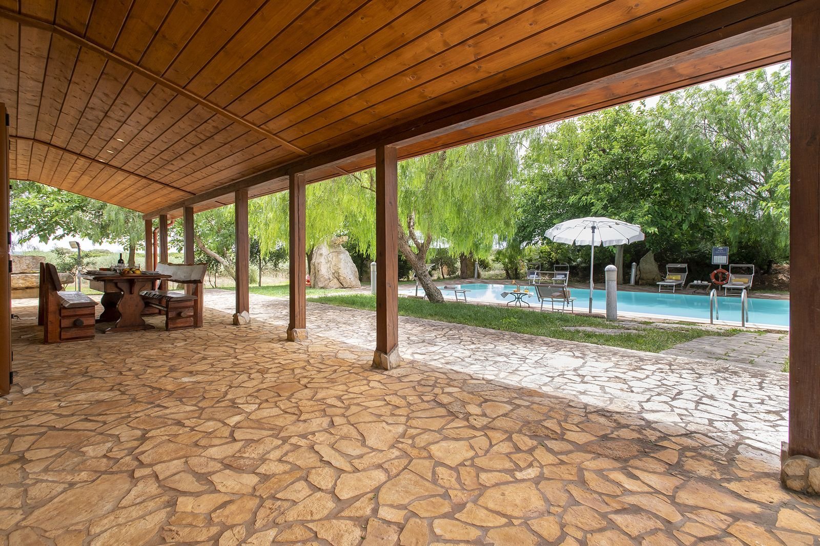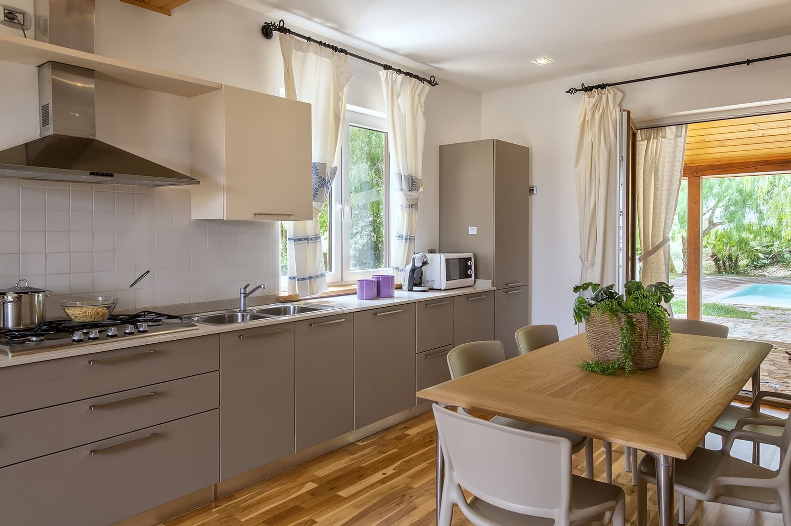 Villa Santa Barbara is een super fijne plek om te verblijven. Het heeft een fantastisch groot onverwarmd privé zwembad van 12 bij 6. Waar wij, Fam met 2 kinderen heerlijk in hebben gezwommen. Verkoelend op de hele warme dagen en wat frisjes op minder warme dagen. Een aantal ligbedden om te chillen, grote parasol, een buiten douche zorgen voor comfort. Een grote tafel onder de overkapping waar je heerlijk kunt eten, spelletjes spelen (wel zelf meenemen) en kunt borrelen. Mocht je nog niet het gevoel van privacy ervaren dan zorgen de bomen rondom het zwembad daar wel voor.