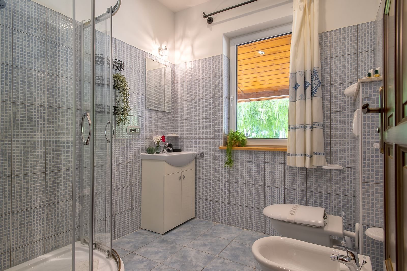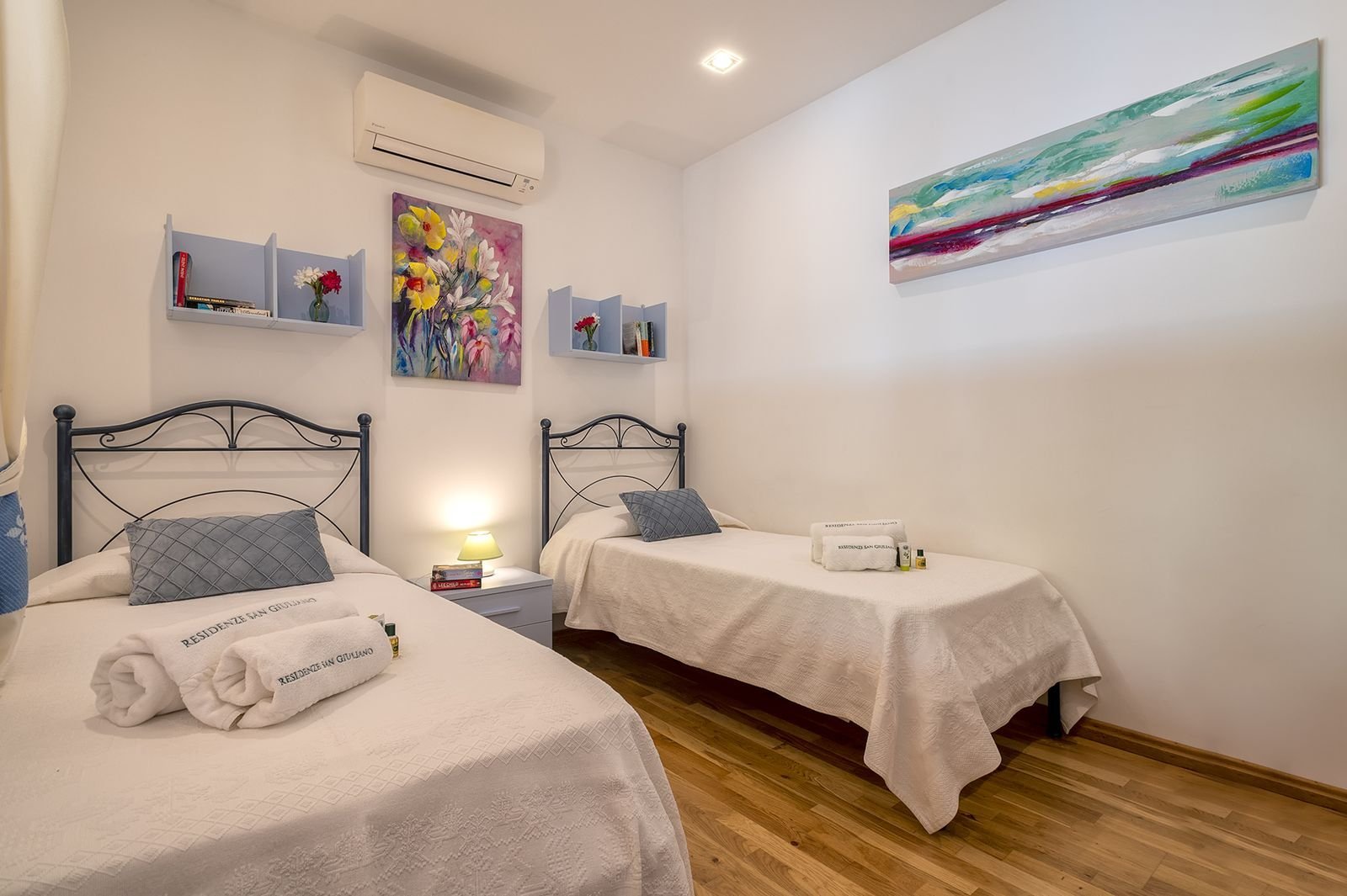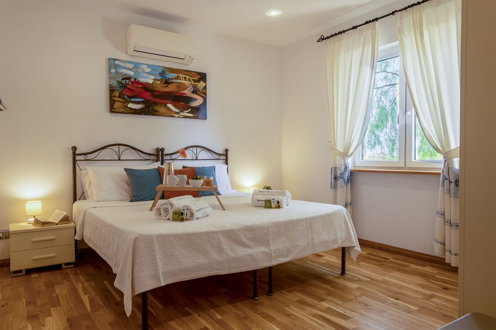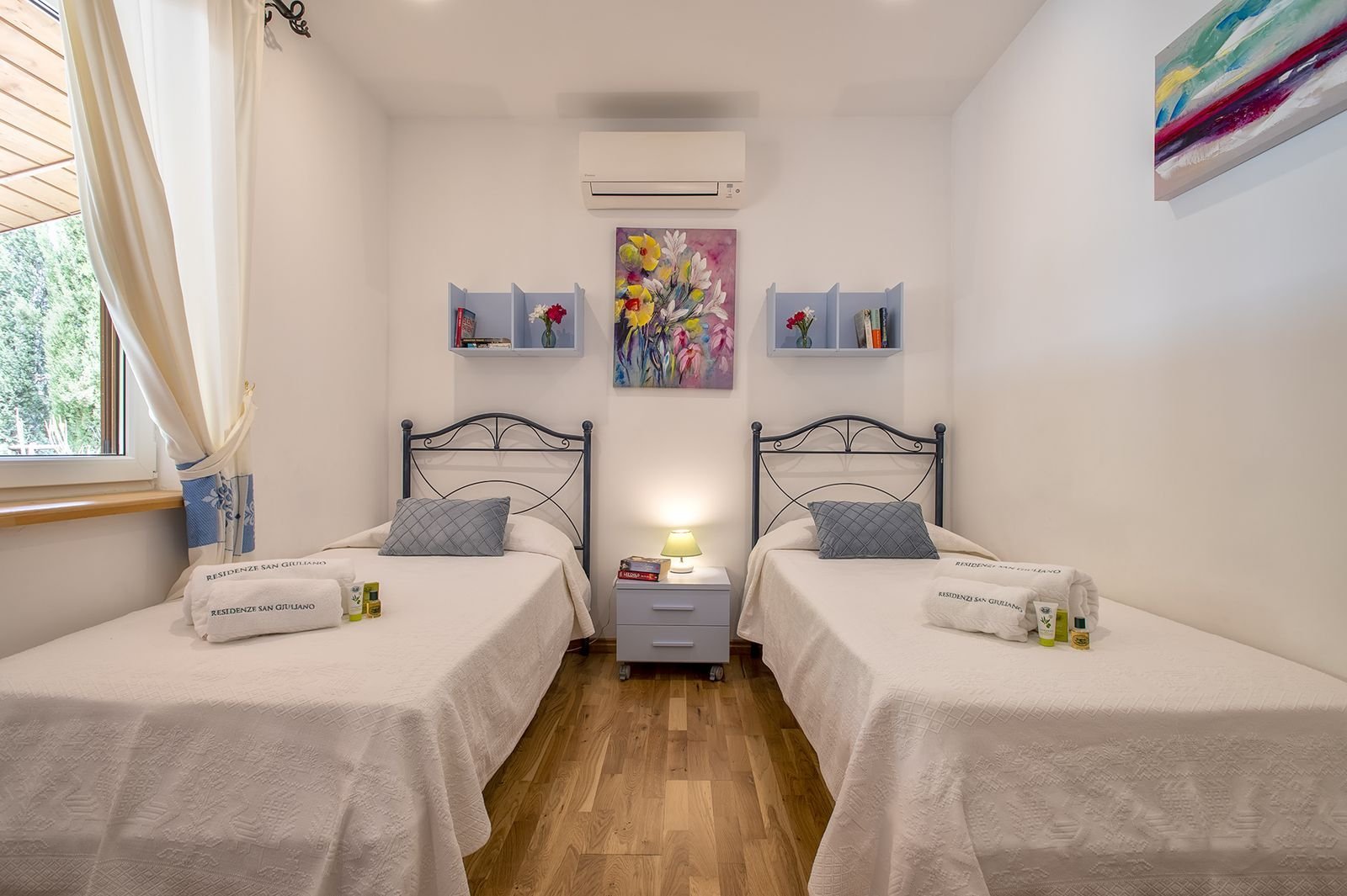 Er zijn 2 slaapkamers met goede bedden, waarvan de master bedroom met een groot 2 persoonsbed en de andere slaapkamer met 2 losse 1 persoonsbedden. Daarbij heeft elke slaapkamer een eigen badkamer met douche, wc, bidet, handdoeken en badlakens.