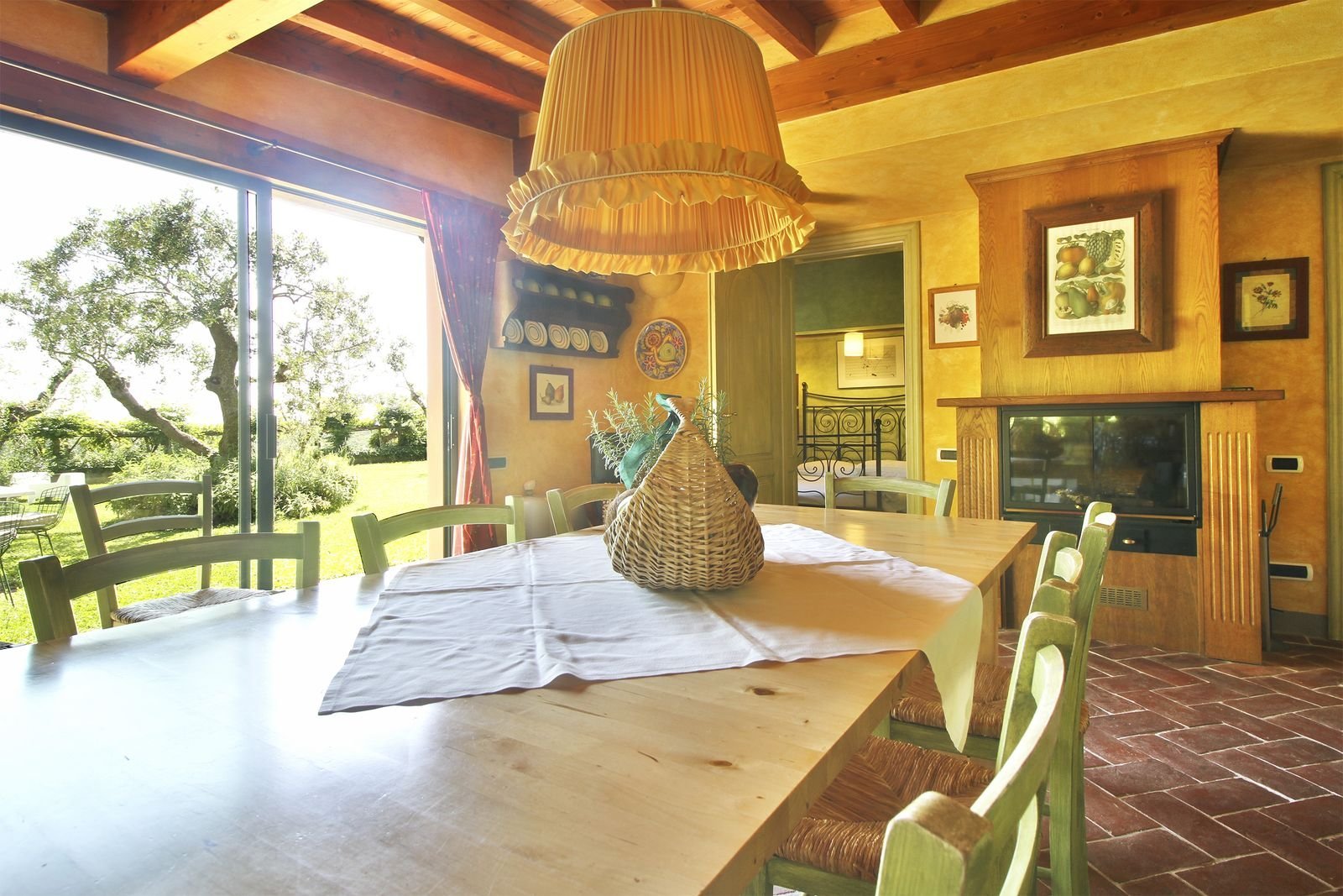 Castore e Polluce heeft een ruime woonkamer met banken, Tv en open haard. Ernaast ligt de eetkamer met eettafel en open haard; een fijne plek om lekker lang te tafelen in goed gezelschap.